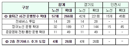 인천시와 김포시 등 수도권 서부지역 16개 노선은 출퇴근 시간대 운행