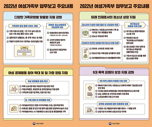 김현숙 여성가족부 장관이 윤 대통령에게 보고한 부처 업무 계획은 크게 4가지로,