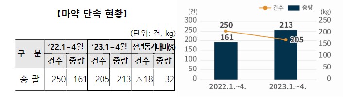 ▷213kg 규모 적발...적발건수는 줄었지만 중량 늘어
