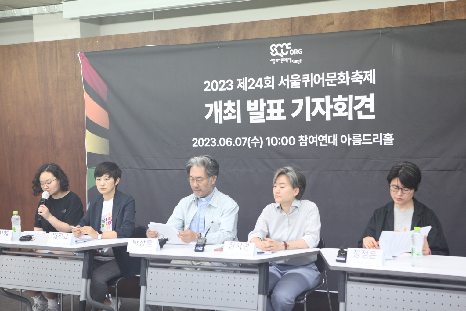[위즈경제] 류으뜸 기자 =서울퀴어문화조직위원회(이하 '조직위')가 7일 참여연대 2층 아름드리홀에서 기자회견을 통해 2023년 제24회 서울퀴어문화축제 개최 개획을 브리핑했습니다.