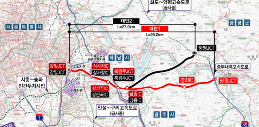 이어지는 고속도로 노선을 단일안으로 확정하지 않았을뿐더러, 서울시와 하남시 양쪽의 의견을 적극적으로