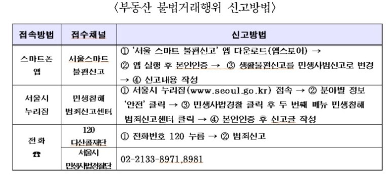 서울시는 부동산 관련 부정∙불법 행위를 시민들이 쉽고 간편하게 신고할