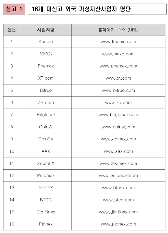 ▷ '특금법 위반', 해외 가상자산거래소 16개소 국내 영업 정지