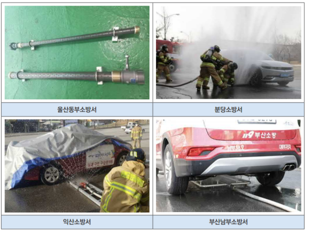 소방청은 “지난해 말 기준 전기차 누적 등록 대수가 34만 7000대라는 점을 고려하면 화재 발생 비율은 0.01%로 내연기관 차량의 0.02%(등록대수 2369만 8,000대 대비 화재발생 3680건)에 비하면 절반 가량에 불과하다”면서도, “변화하는 재난환경에 대비해 전기차 화재진압 맞춤형 장비를 지속적으로 확충할 계획”이라고 전했습니다.