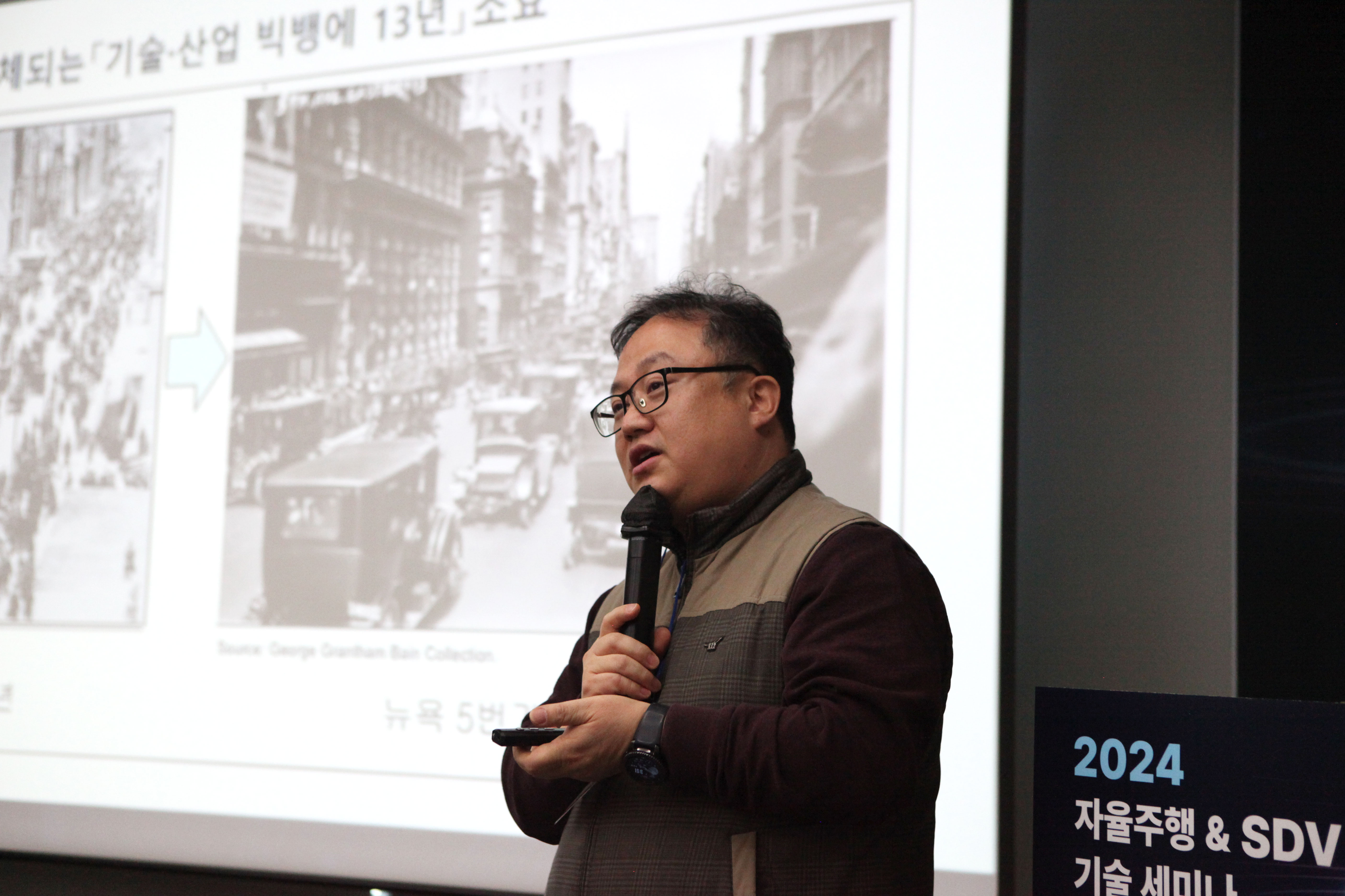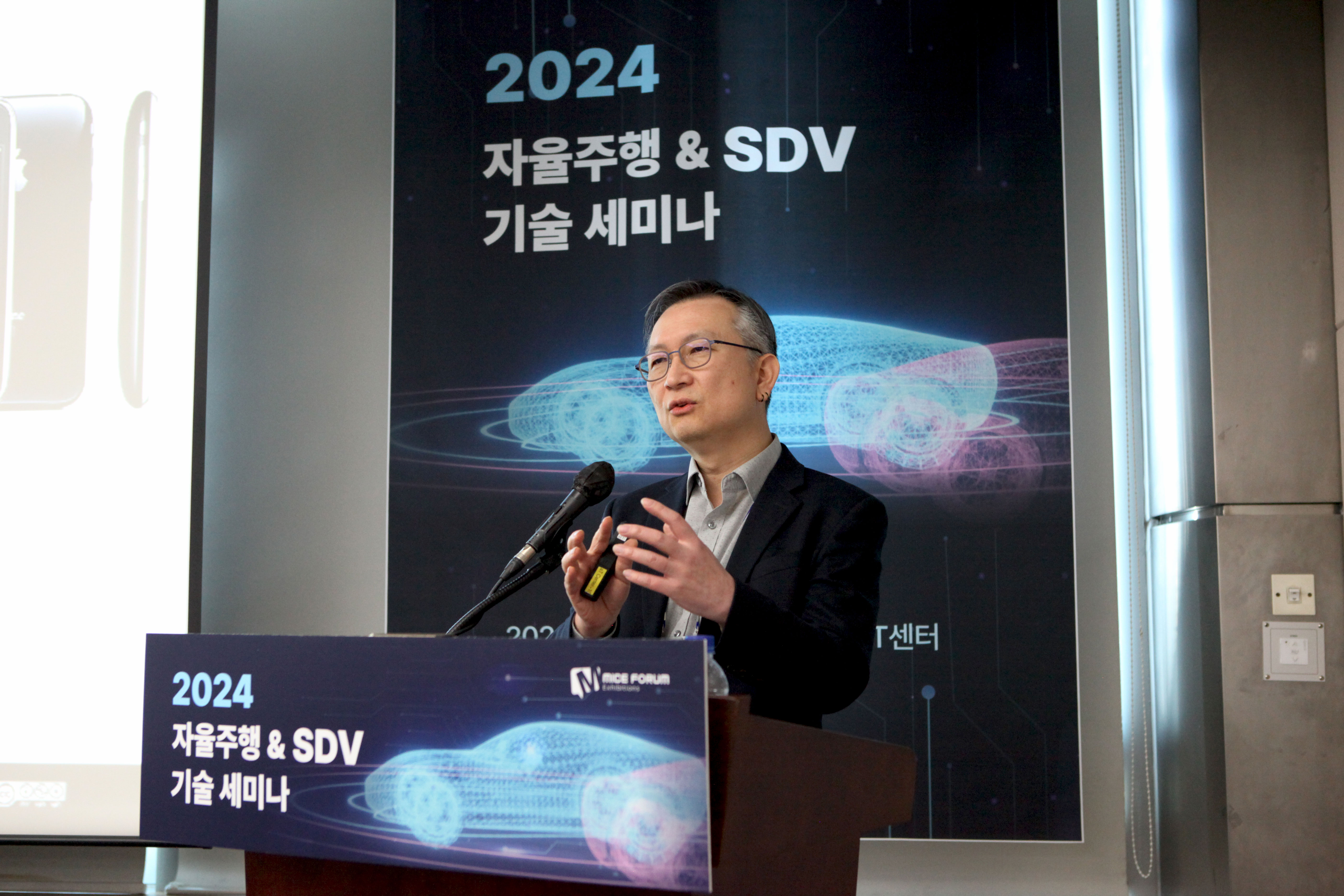 자율주행 및 SDV 기술세미나에 참여해 발표 중인 곽수진 한국자동차연구원 연구부문장(출처=위즈경제)