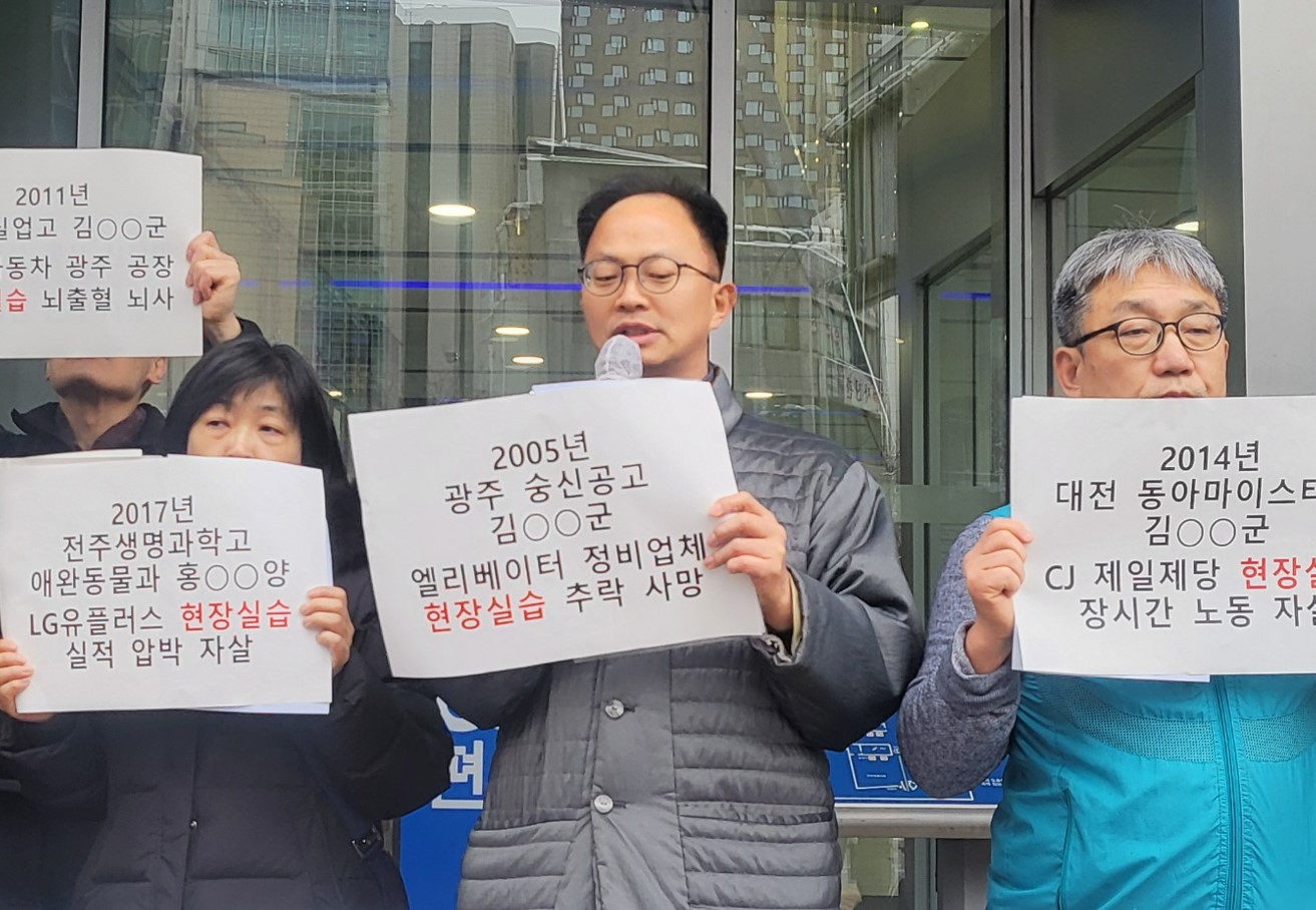 이어 문 부위원장은 "많은 현장실습생들이 진짜 노동자로 보호받고 전문 분야의 실습을 제공받지 못한다. 설사 같은 전공분야라 하더라도 임금을 착취하고 안전을 보장하지 않기 때문에 폐지되어야 한다"고 주장했습니다.