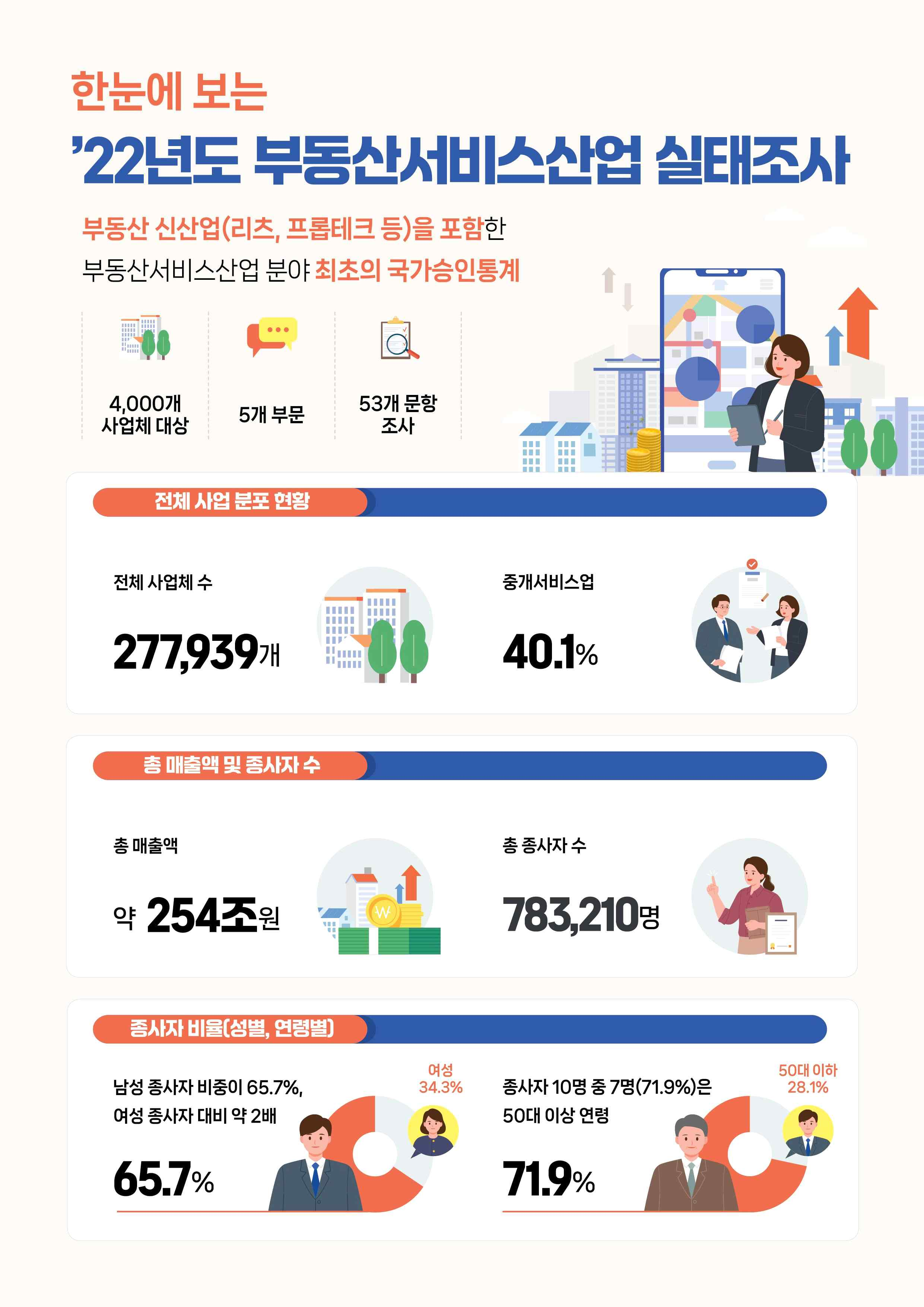 ▷ 2022년 부동산서비스산업 실태조사 결과, 공인중개서비스업 전체 매출 약 5조 3천억