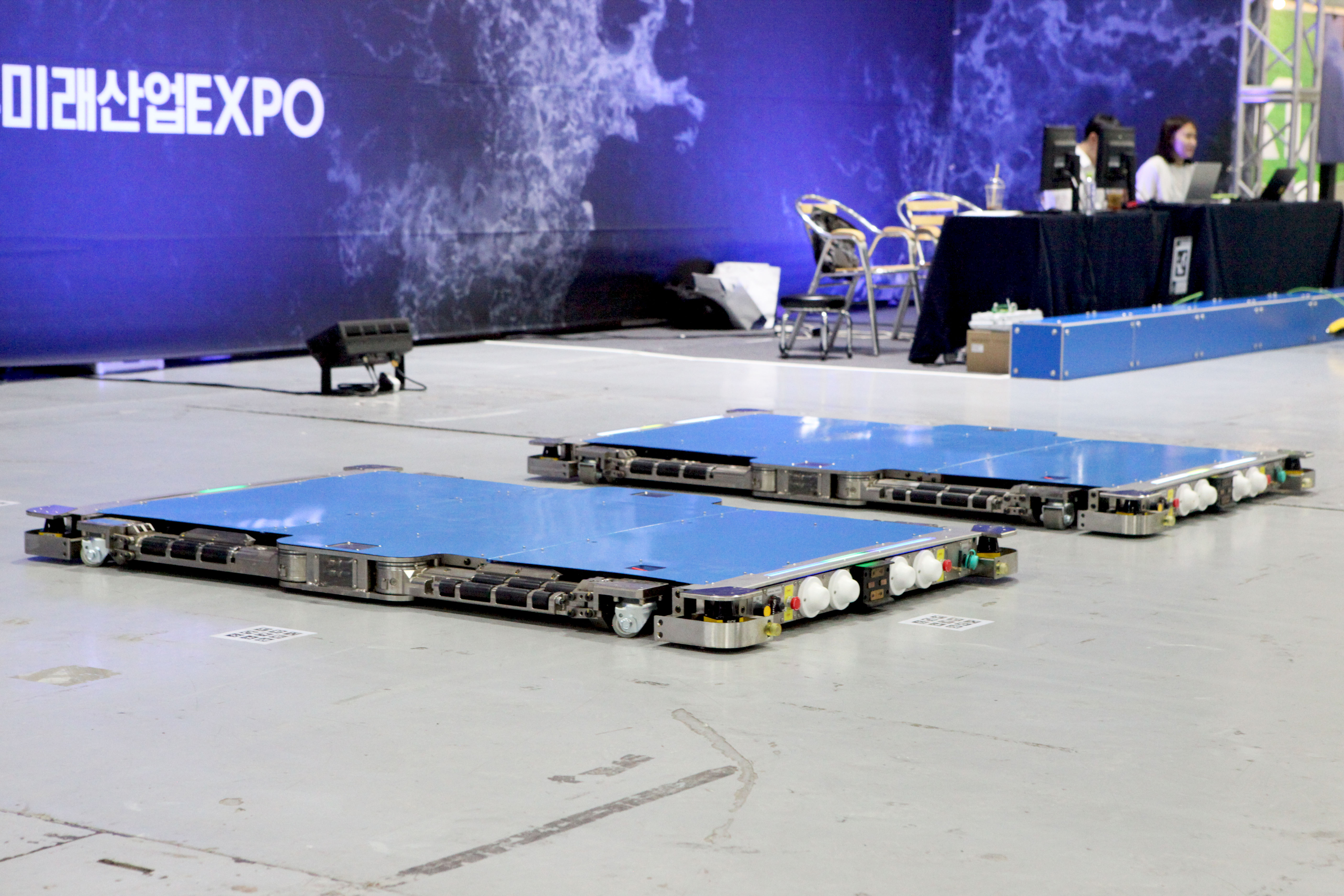 현대자동차그룹 테크관에서 시연 중인 현대위아의 주차로봇 전체 모습(출처=위즈경제)