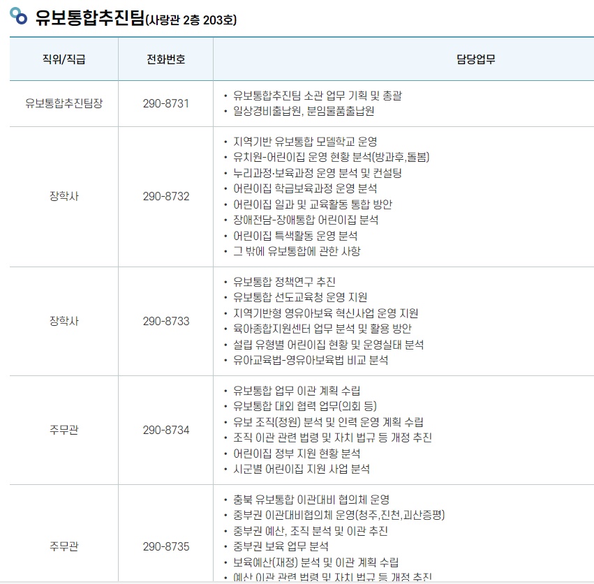 ▷유보통합추진단 내 장애영유아 관련 담당자 없어