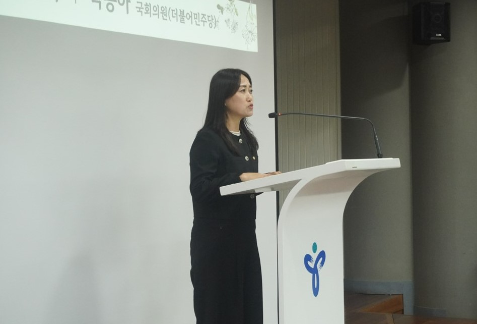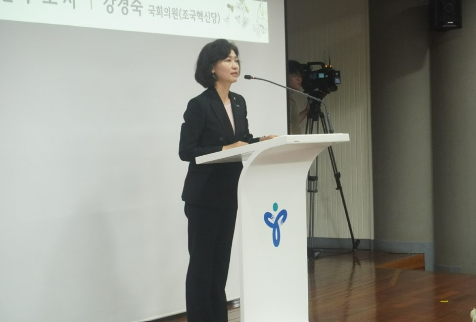 강경숙 조국혁신당 의원은 18일 서이초 1주기를 맞아 서울시교육청과 6개 교원단체, 교사유가족협의는 공동주관으로 주관한 추모식에 참석해 추모사를 말하고 있다. 사진=위즈경제