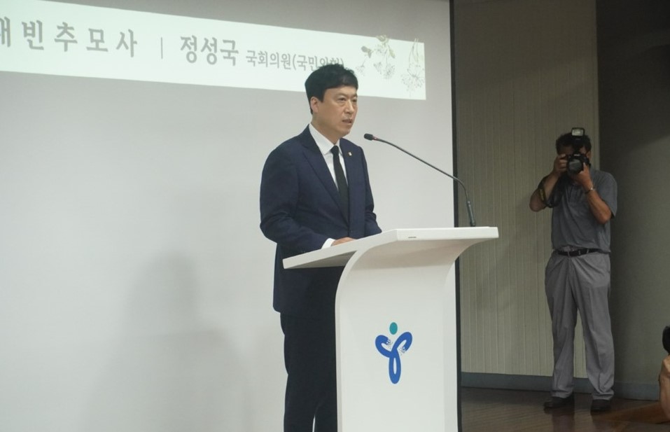 정성국 국민의힘 의원은 18일 서이초 1주기를 맞아 서울시교육청과 6개 교원단체, 교사유가족협의는 공동주관으로 주관한 추모식에 참석해 추모사를 말하고 있다. 사진=위즈경제