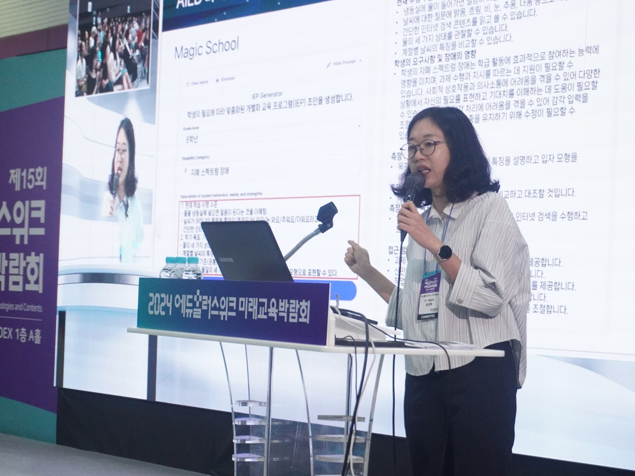 9일 러닝스파크 윤성혜 이사가 미래배움터에서 '글로벌 에듀테크 박람회와 트랜드'를 주제로 교육 세미나 발표를 하고 있다. 사진=위즈경제