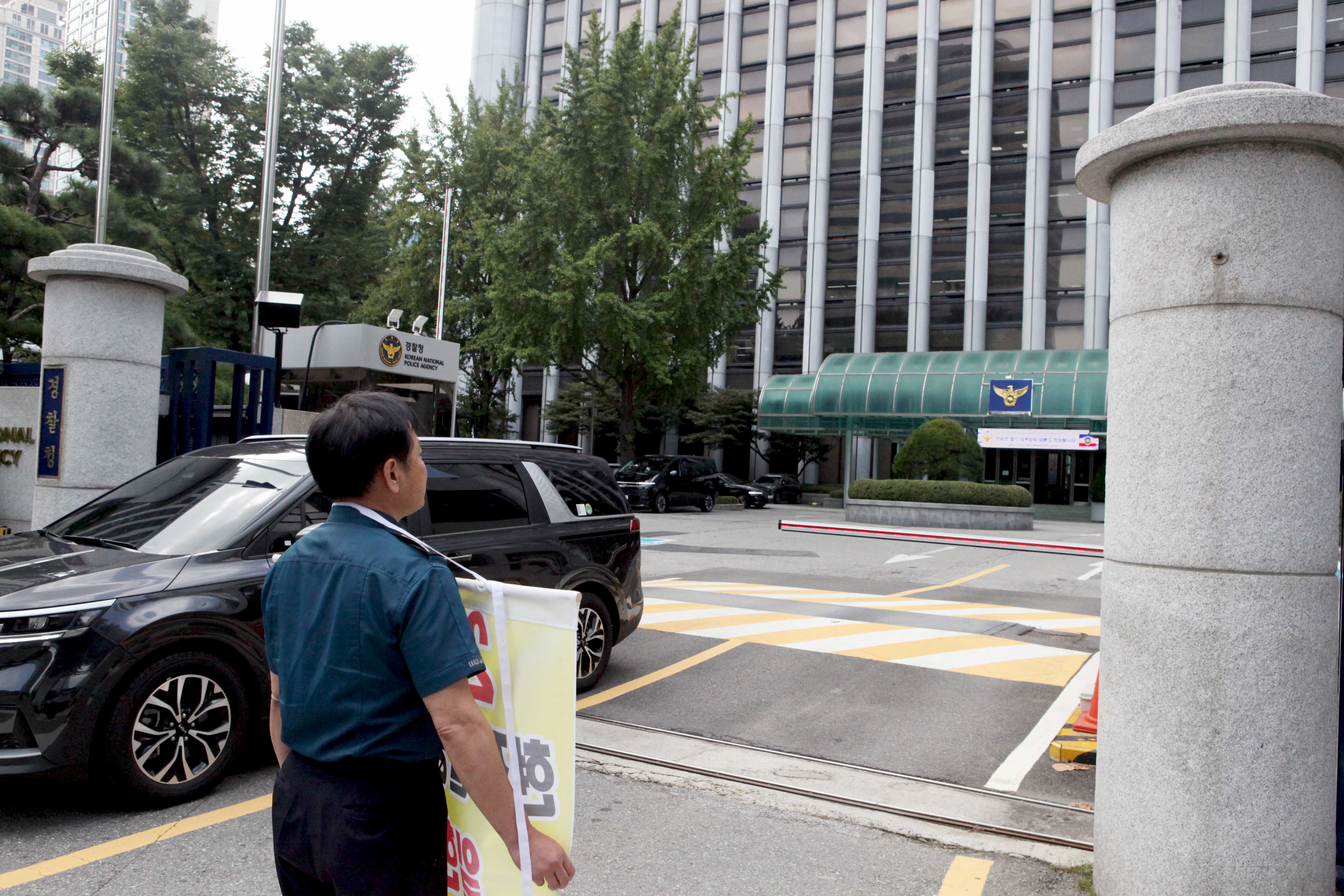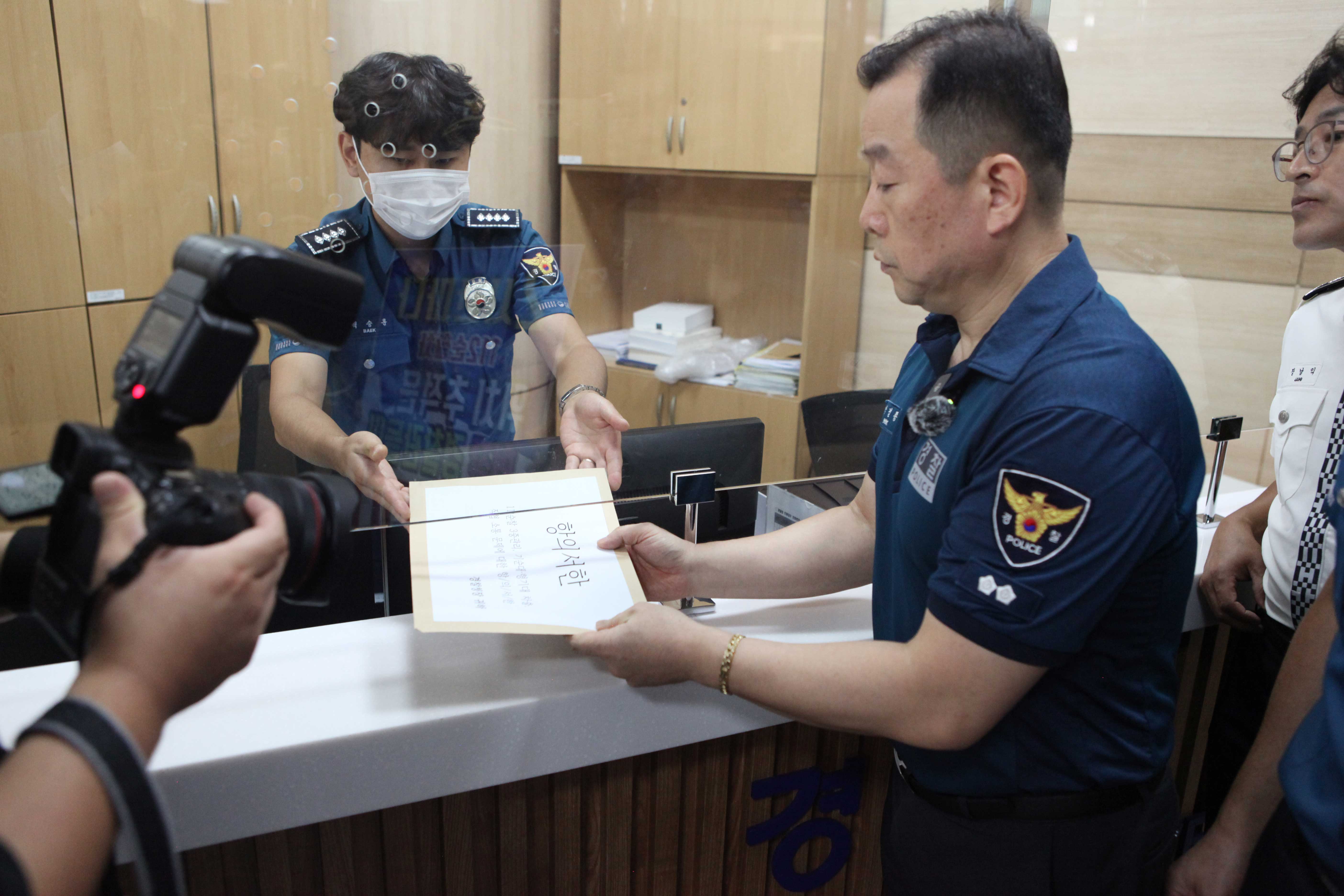 서울 서대문구 경찰청 민원실에 항의서한 전달 중인 박경종 경찰직장협의회 강원경찰청 대표(출처=위즈경제)
