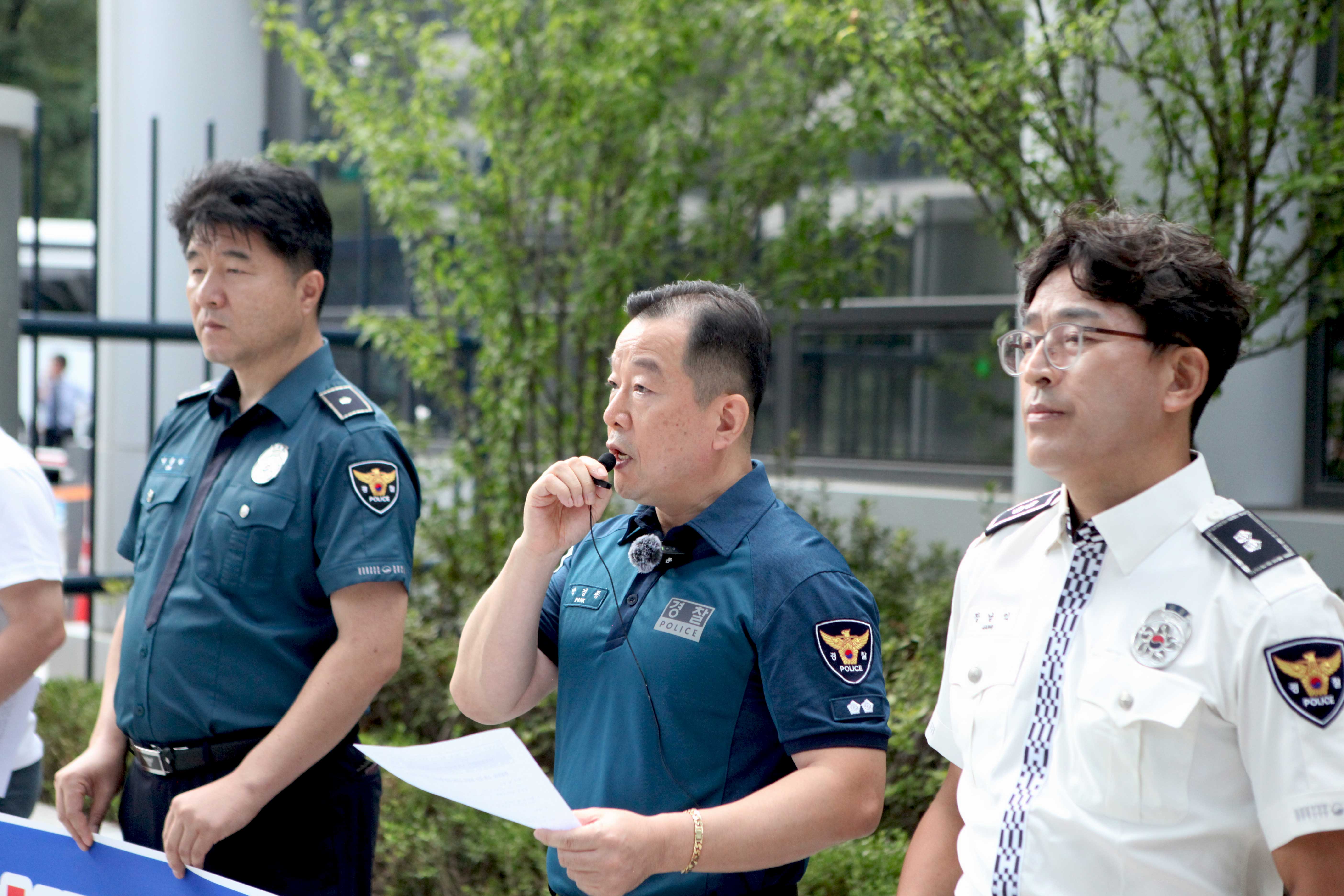 이날 기자회견에는 음영배 인천중부경찰직장협의회 회장, 정학섭 부산북부서 직장협의회 회장, 박상욱 전주완산경찰서직장협의회 회장 등 전국 경찰직협 지역대표, 회장, 일반 회원 10여 명이 참석했다.