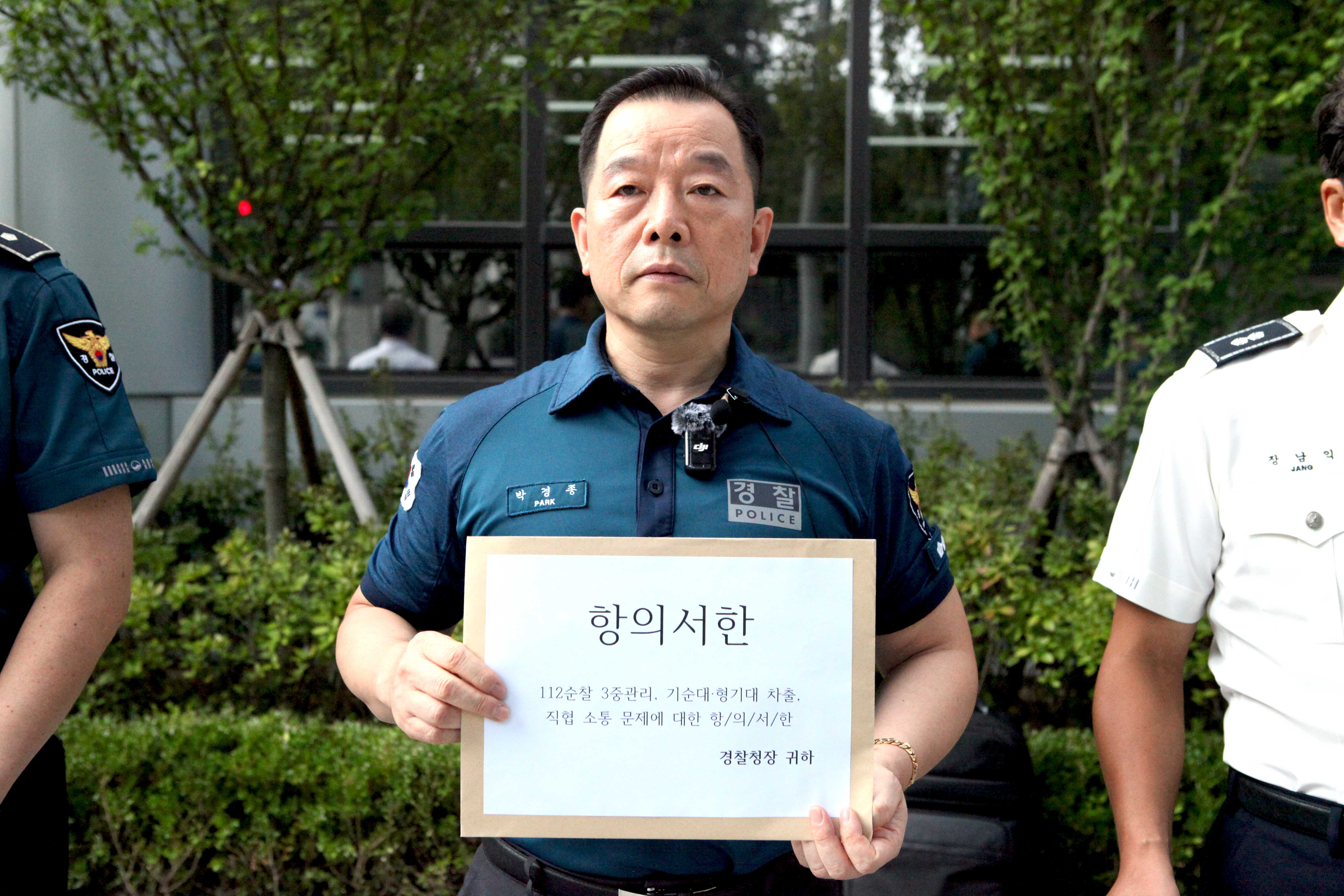 조지호 경찰청장에게 전달할 항의서한을 들고 있는 박경종 경찰직장협의회 강원경찰청 대표(출처=위즈경제)