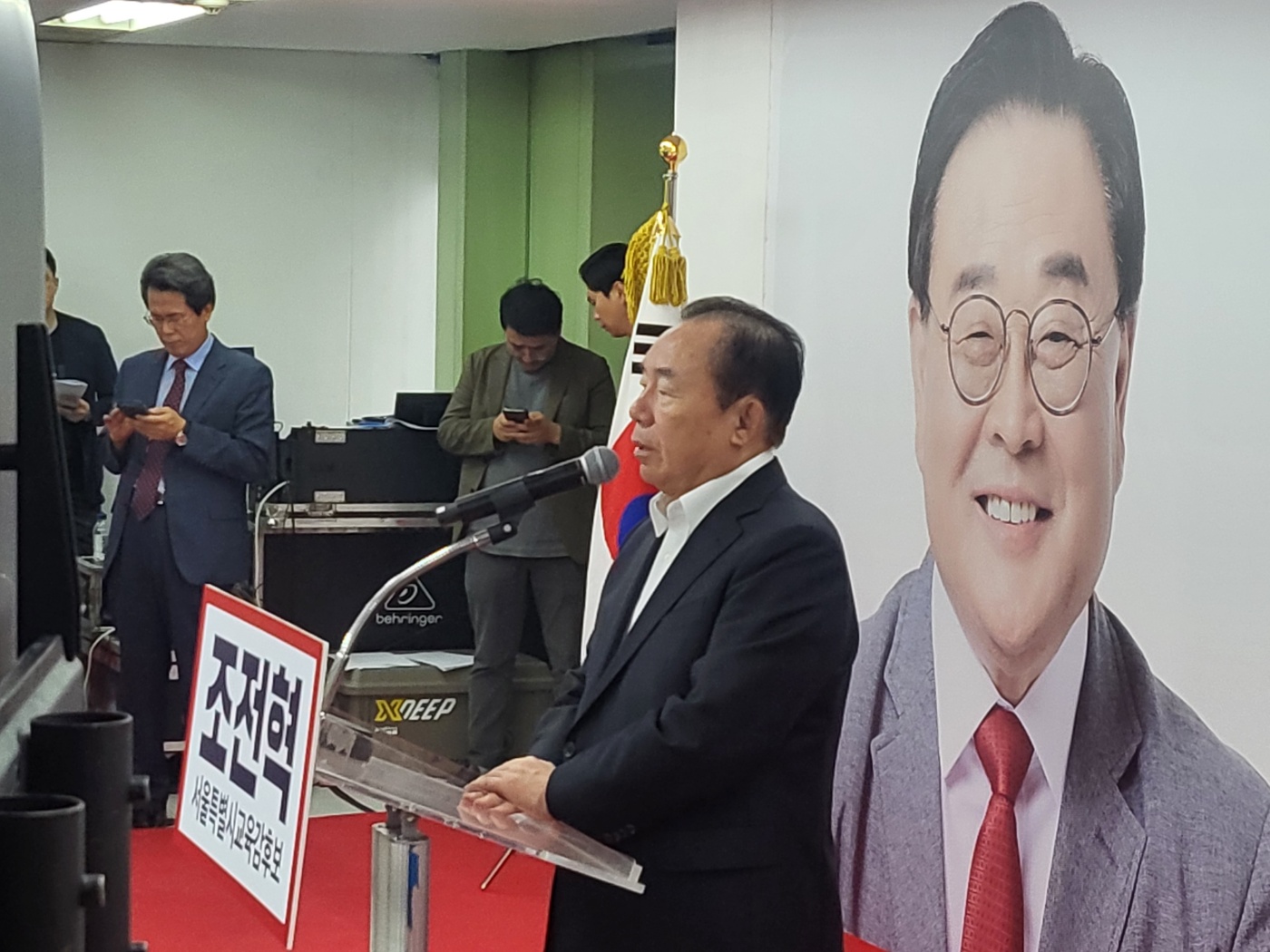 조전혁 서울시교육감 후보가 1일 오후 2시 서울 종로구 선거사무소 개소식에서 발언을 하고 있다. 사진=조 후보 캠프 공보팀
