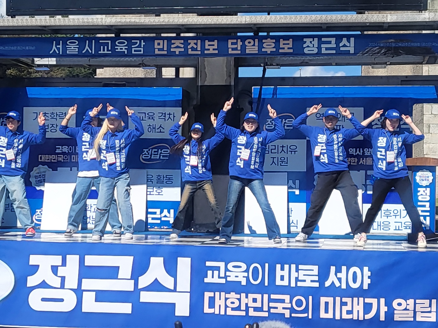 출정식은 이장훈 유세단장의 선창과 지지자들의 후창으로 시작됐다. 유 단장이 "교육감은 정근식" 이라 말하면 지지자들이 똑같은 단어를 외쳤다. 이어 "혁신교육 정근식" 등 유세단장이 구호를 외칠 때마다 지지자들은 한쪽 팔을 번쩍 들며 곧바로 "혁신교육 정근식"이라며 목소리를 높였다.