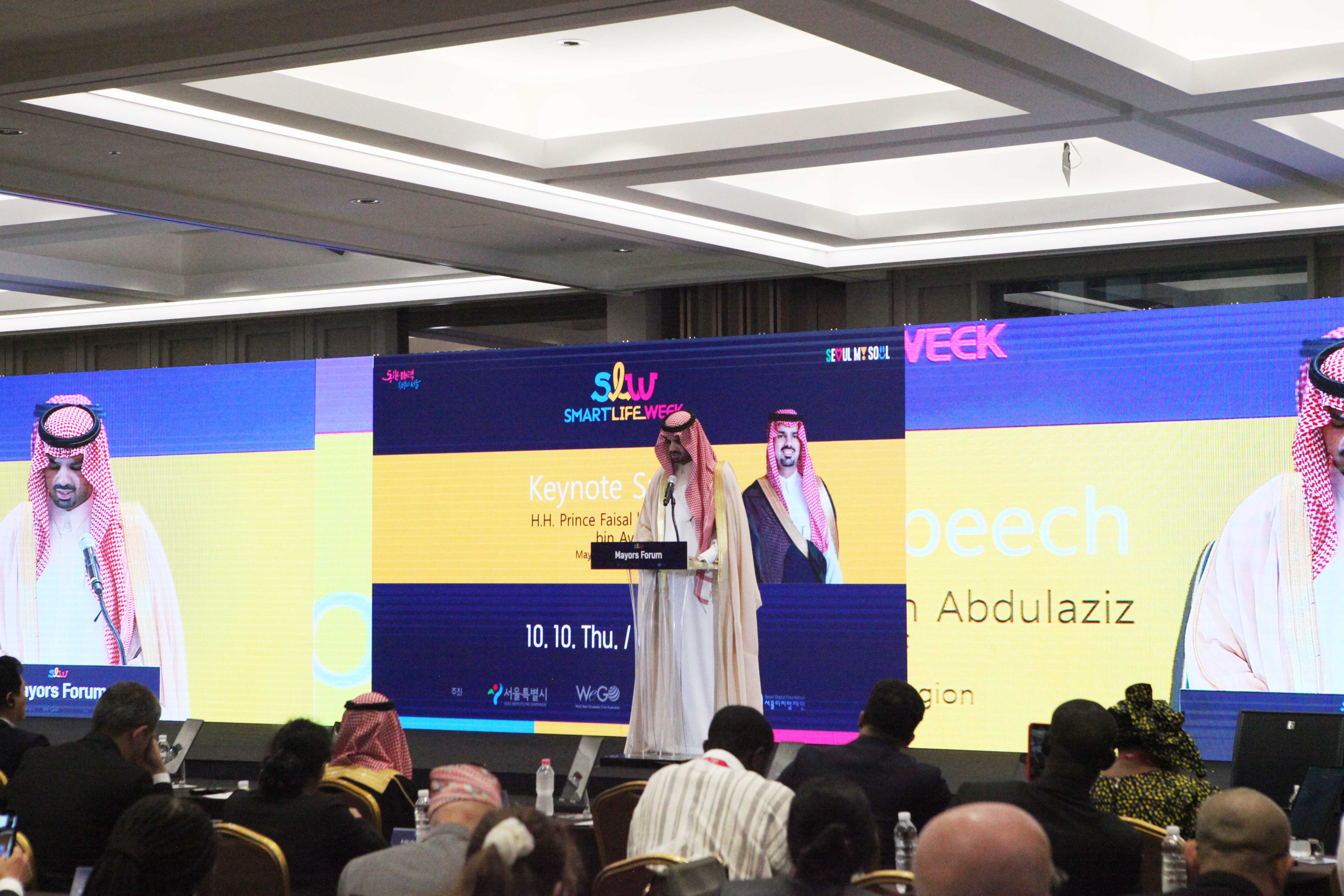 메이어스 포럼에서 기조연설을 진행 중인 파이살 빈 압둘라지즈 빈 아이야프 리야드(사우디아라비아) 시장(출처=위즈경제)
