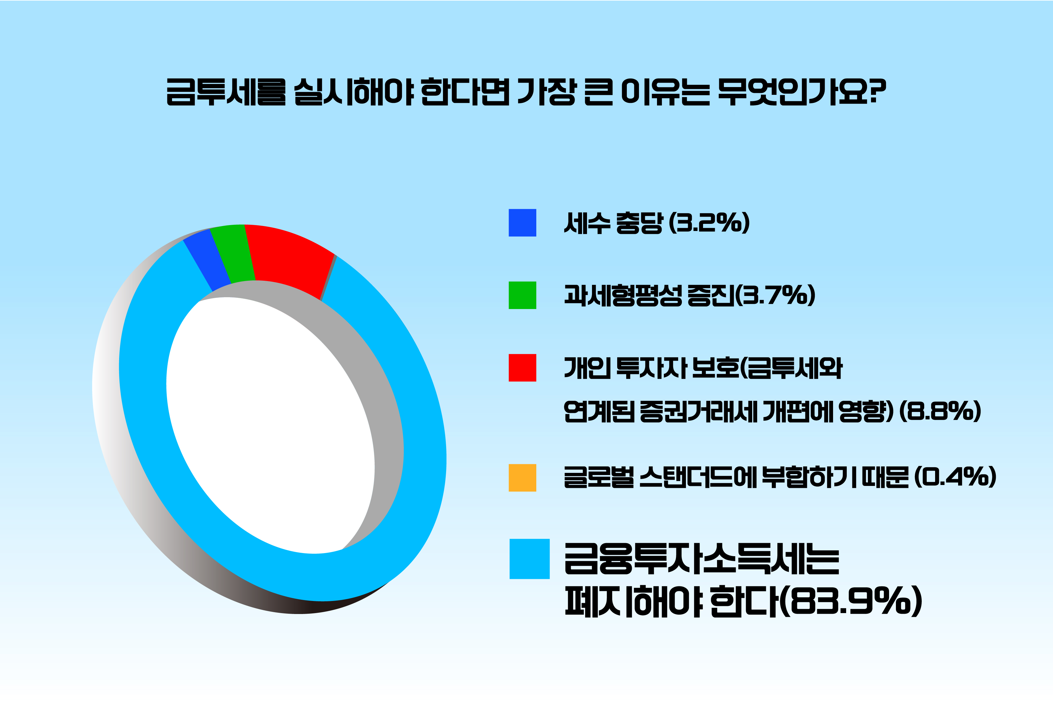 특히, 금투세 유예와 폐지 사이에서는 폐지가 필요하다는 의견이 압도적으로