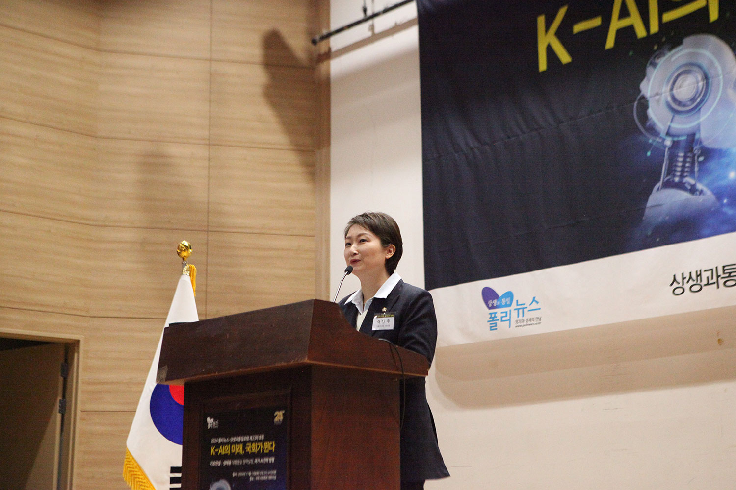 ‘K-AI의 미래, 국회가 뛴다’ 포럼에서 발언 중인 이언주 더불어민주당 의원(사진=위즈경제)