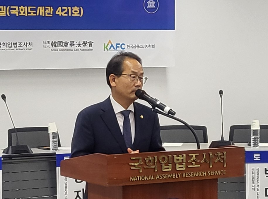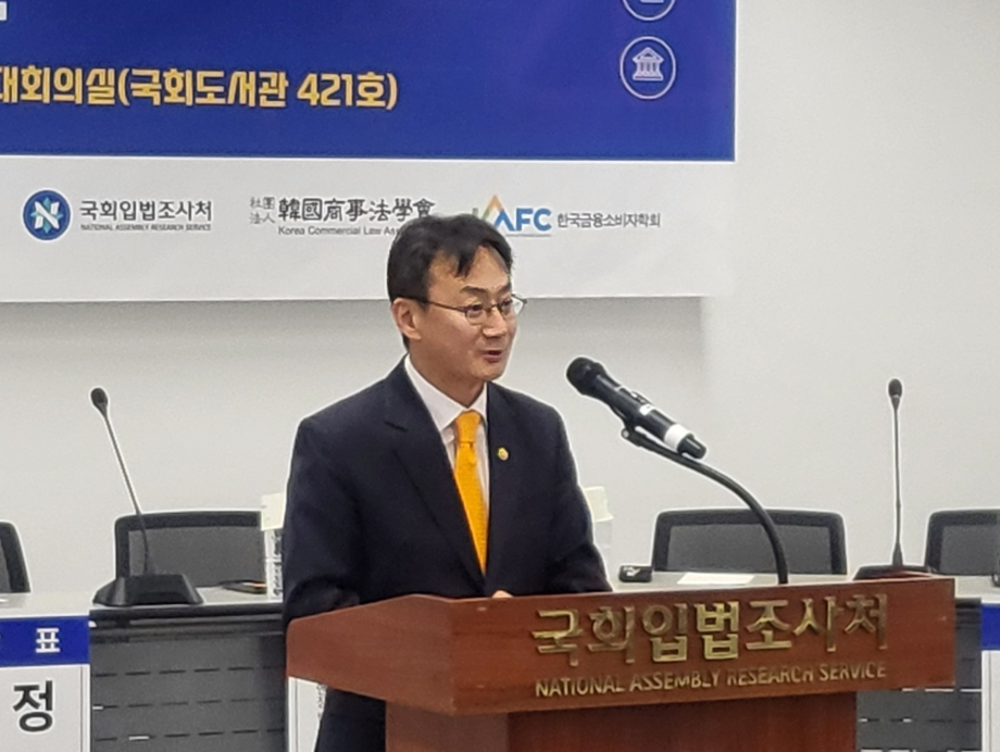 정신동 한국외국어대학교 법학전문대학원 교수가 '온라인상 소비자 기만행위 규제 방안'을 주제로 발표를 하고 있다. 사진=위즈경제