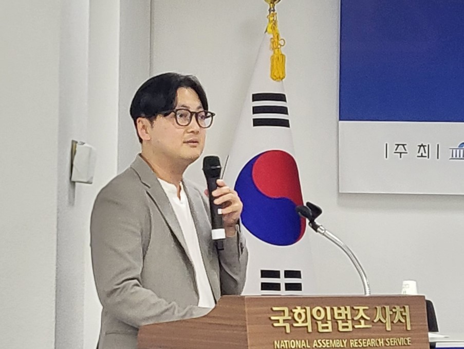 정준화 입법조사관이 20일 포럼에서 '딥페이크로 인한 이용자 오인 가능성, 소비자 기만에 대한 함의'를 주제로 발표하고 있다. 사진=위즈경제
