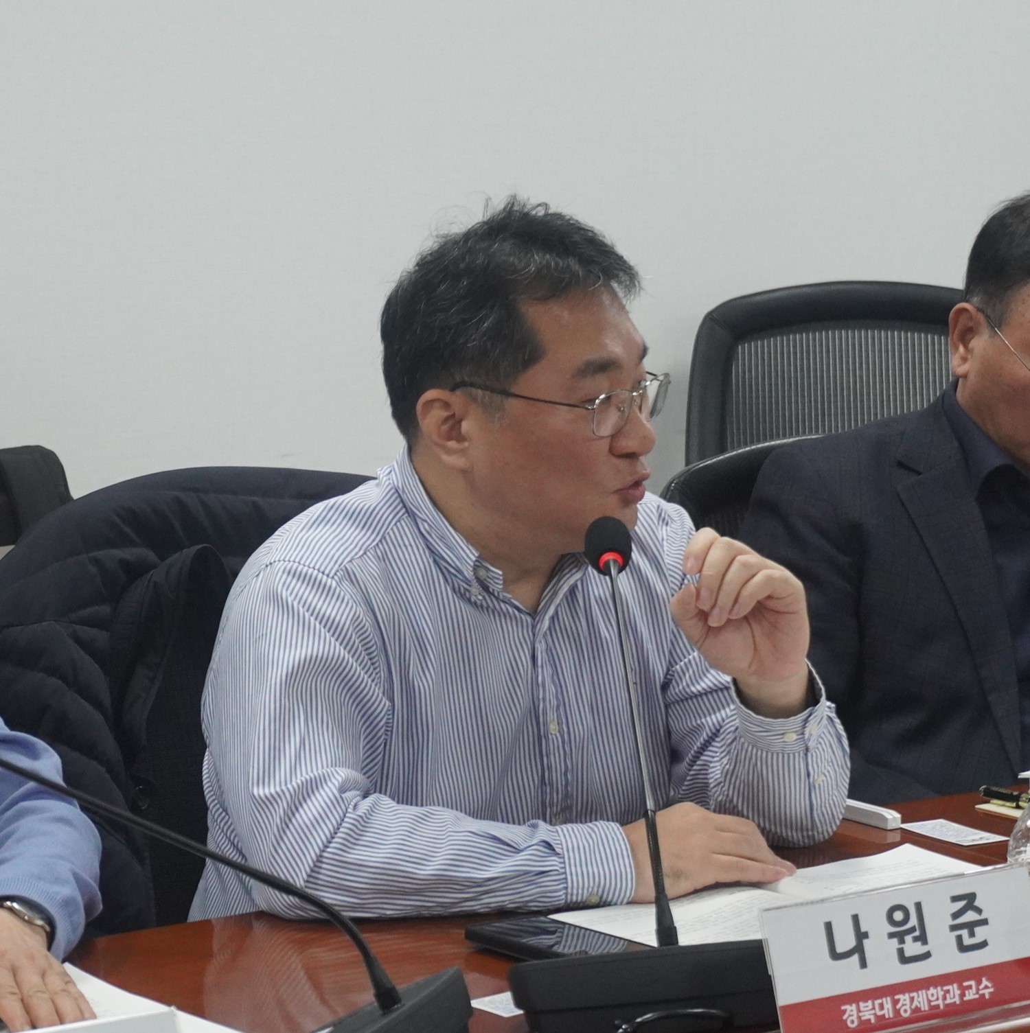 나원준 경북대 경제학과 교수는 '트럼프 2.0과 한국경제'를 주제로 발제했다. (사진=위즈경제)