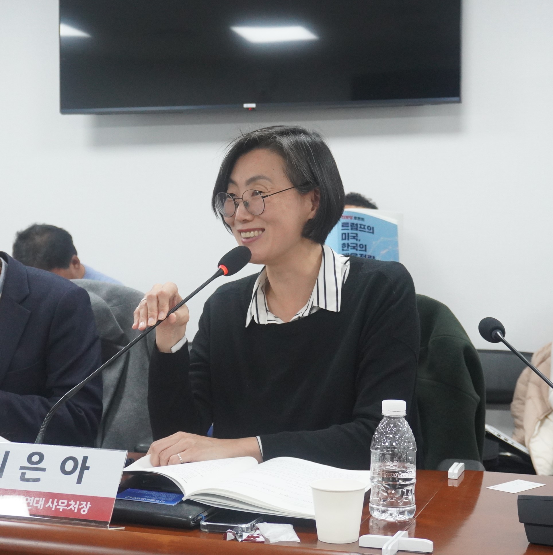 최은아 자주통일평화연대 사무처장은 '한미일 군사협력 전망과 시민사회의 과제'를 주제로 발제했다. (사진=위즈경제)