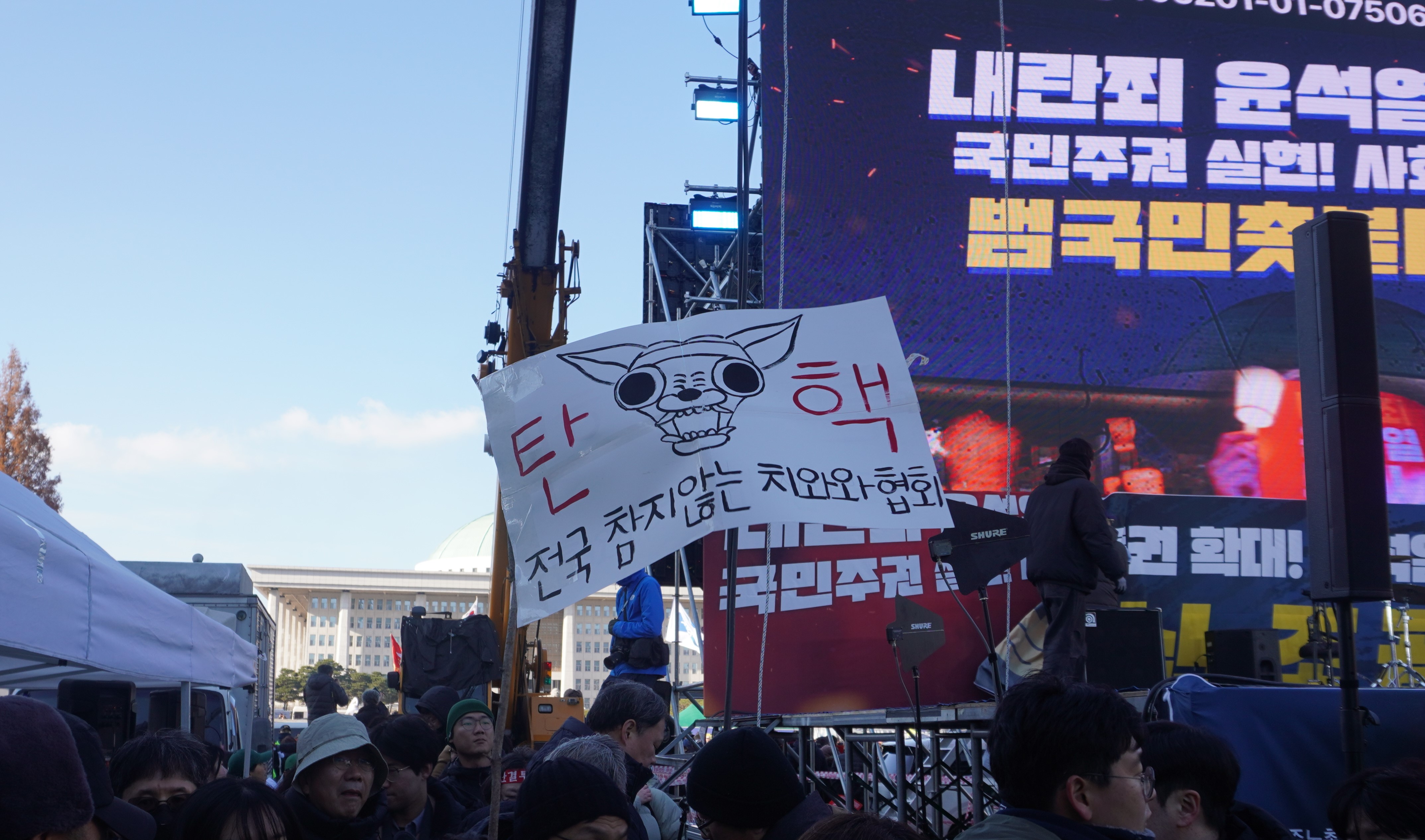 전주에서 온 강아무개씨(28∙여)는 원래 정치에 관심이 없다가 비상계엄 소식을 듣고 공포를 느꼈다고 전했다. 이어 "두려움을 이기는 방법은 집회에 참여하는 것"이라 생각해 국회로 왔다고 말했다.