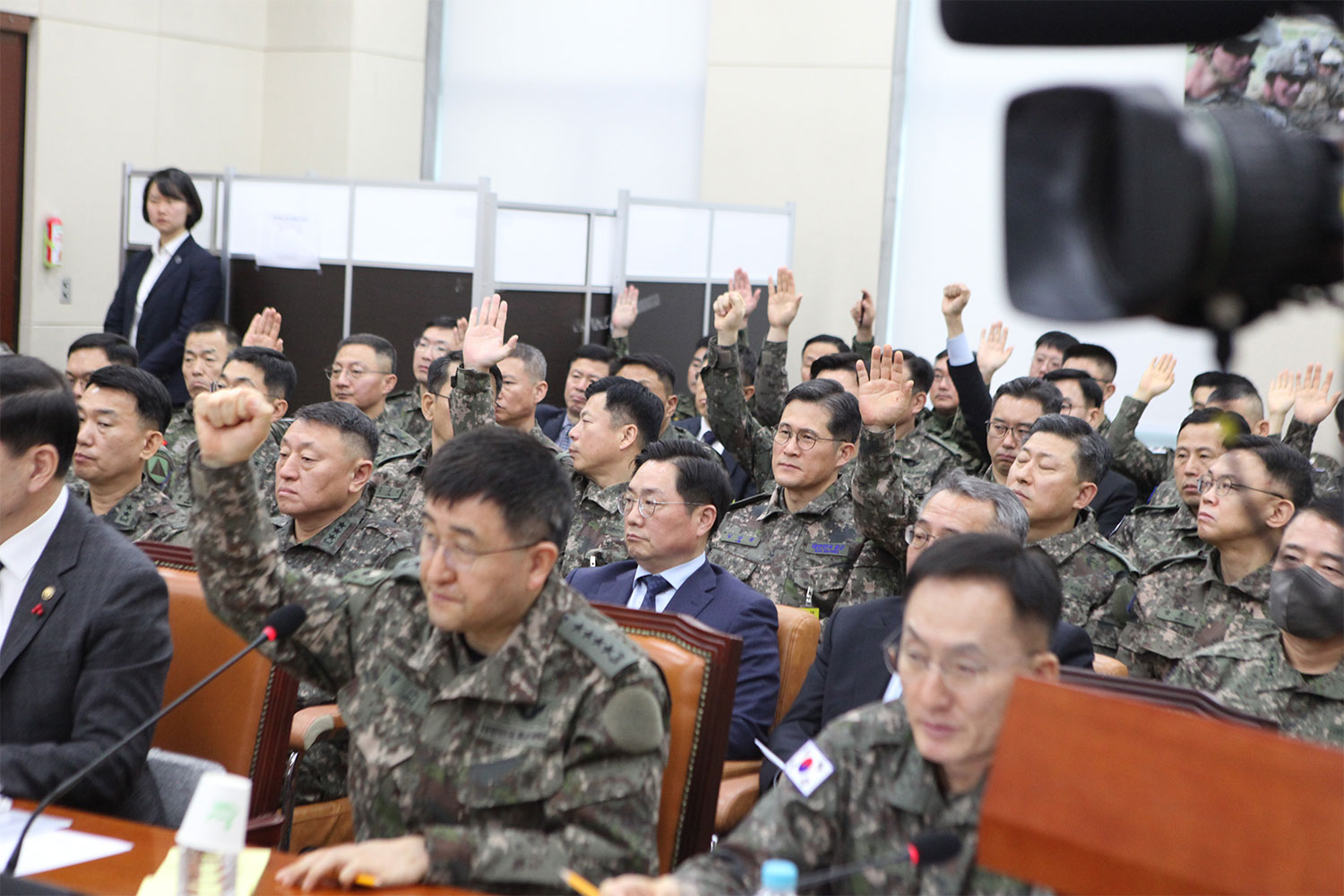 곽규택 국민의힘 의원의 요청에 12.3 사태와 관련해 수사기관에서 수사 및 참고인 조사 등을 받은 이들이 거수한 모습(사진=위즈경제)