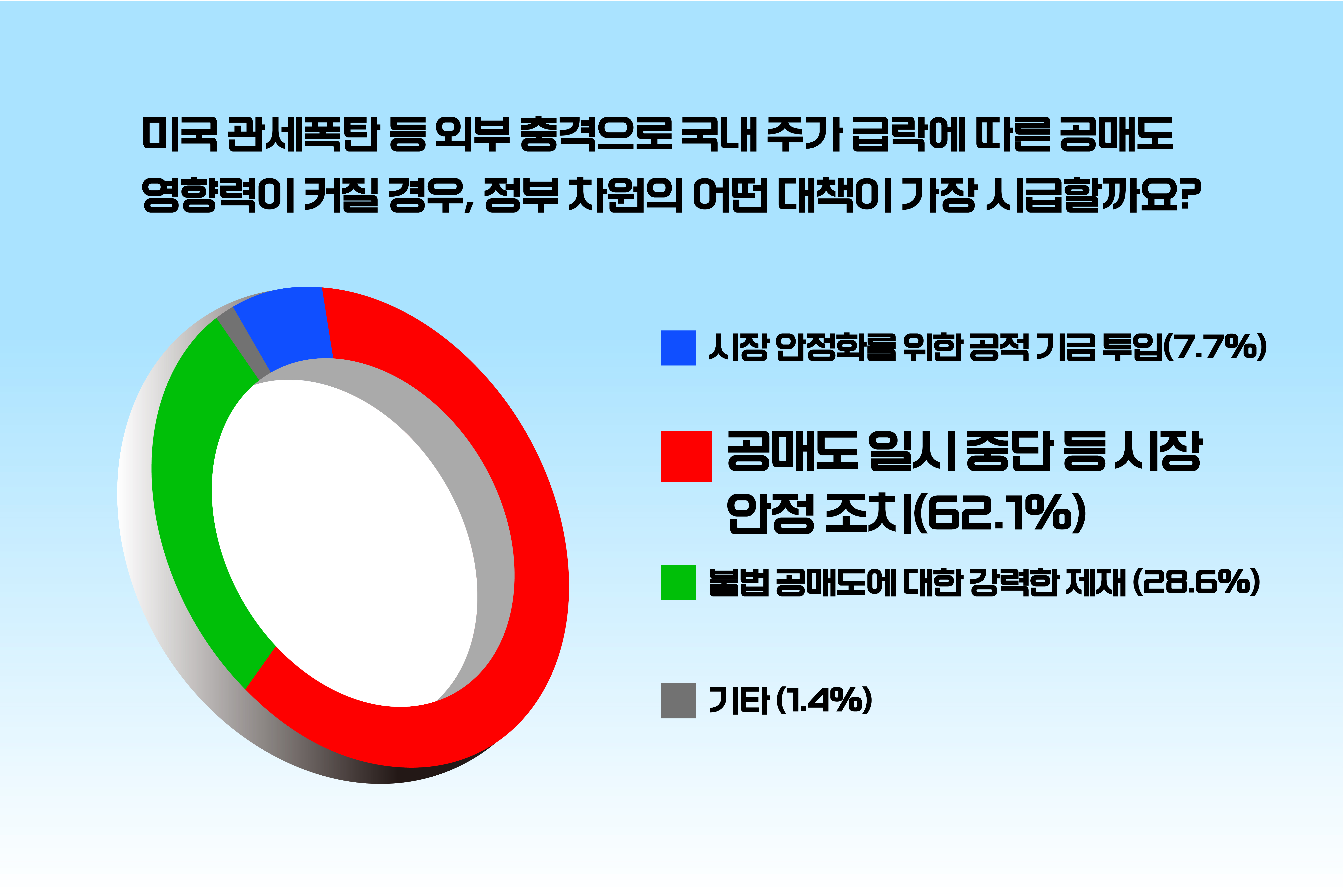 이어 ‘불법 공매도에 대한 강력한 제재’ 28.6%, ‘시장 안정화를 위한 공적 기금 투입’ 7.7%, ‘기타 1.4%’ 순이었다.