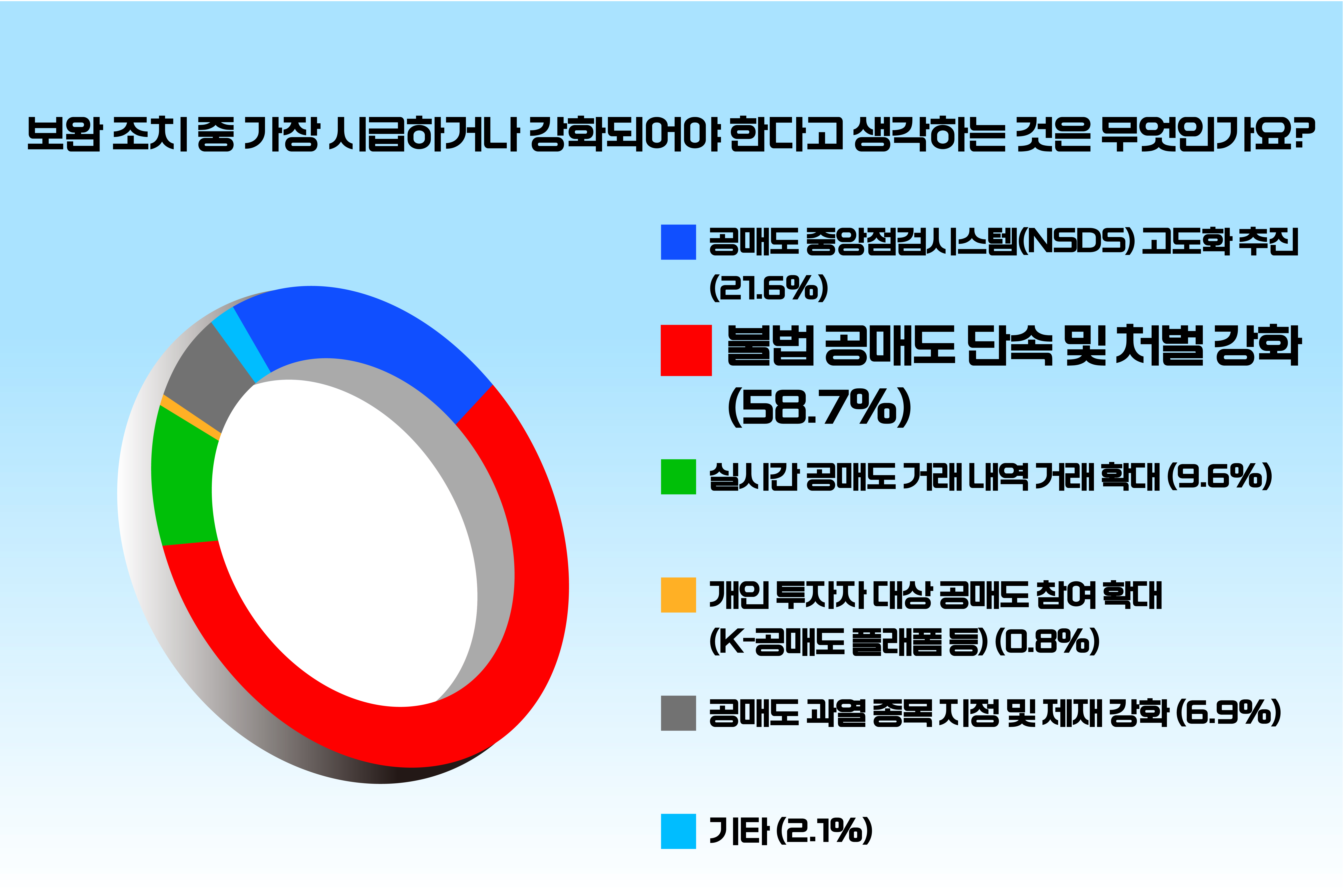 공매도 단속 및 처벌 강화(58.7%)’를 촉구하는 의견이 다수를 차지했다.