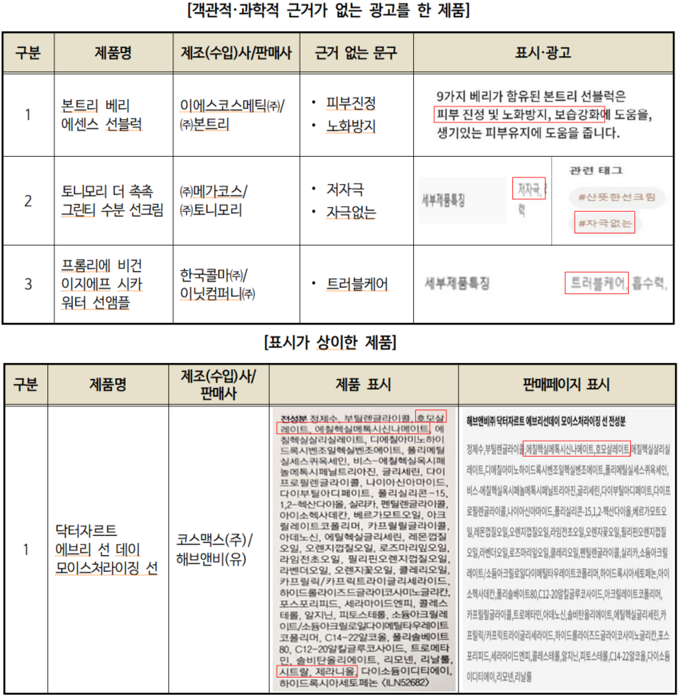 ▷미백·트러블케어 등 과장 광고…4-MBC 미표시 제품도 적발
