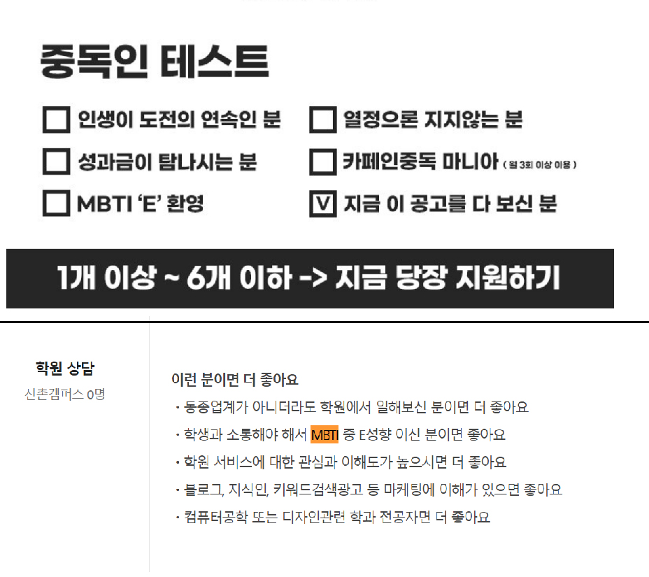 MBTI 성격 유형 중 특정 성향을 선호하는 채용 공고 (출처=사람인)