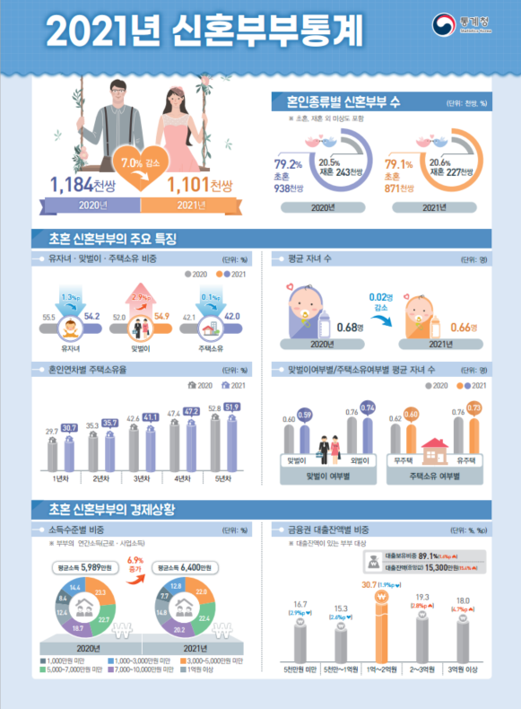 ▷ 2021년 신혼부부 총 11만 1천 쌍, 7%↓