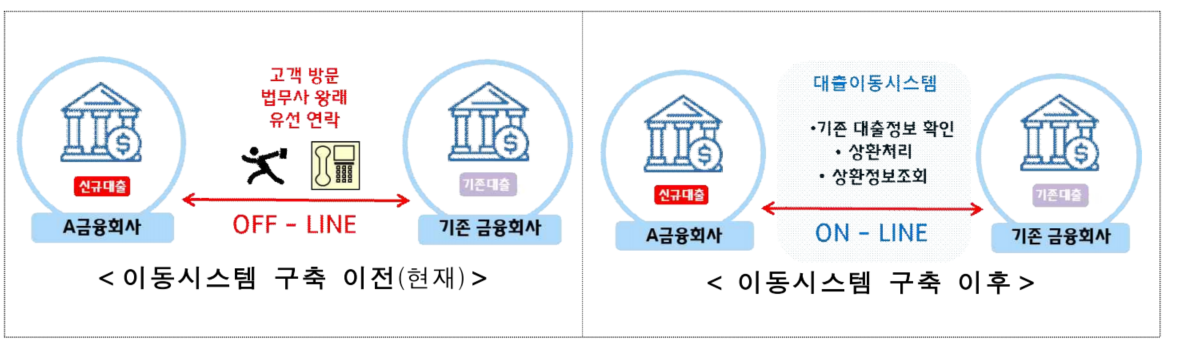 금융위원회가 만들고 있는 ‘대환대출 인프라’는 금융회사 간 상환절차를 금융결제원 망을 통해 중계하고 전산화하는 시스템입니다. 이 과정에서 대환대출 시장 참여자를 확대하고, 금융소비자의 의사결정을 충분히 지원하기 위해 플랫폼을 개선하고 있는데요.