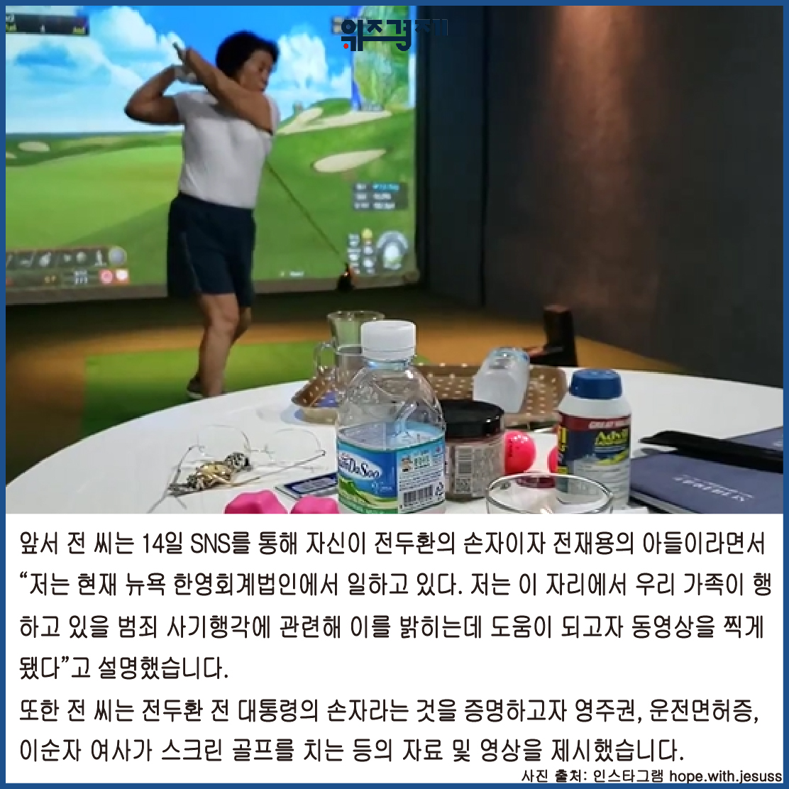 또한 전 씨는 전두환 전 대통령의 손자라는 것을 증명하고자 영주권, 운전면허증, 이순자 여사가 스크린 골프를 치는 등의 자료 및 영상을 제시했습니다.