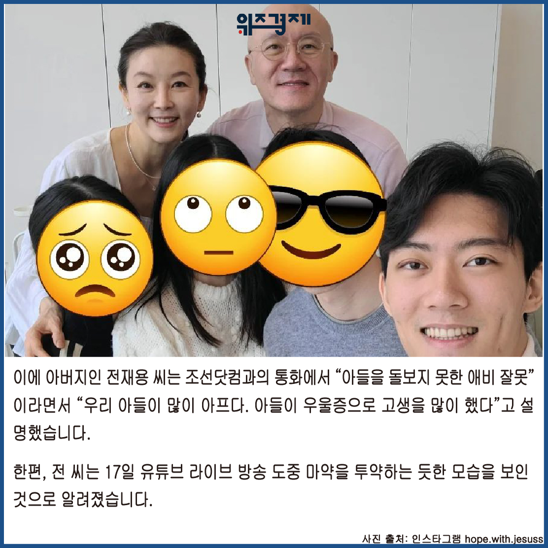 이에 아버지인 전재용 씨는 조선닷컴과의 통화에서 “아들을 돌보지 못한