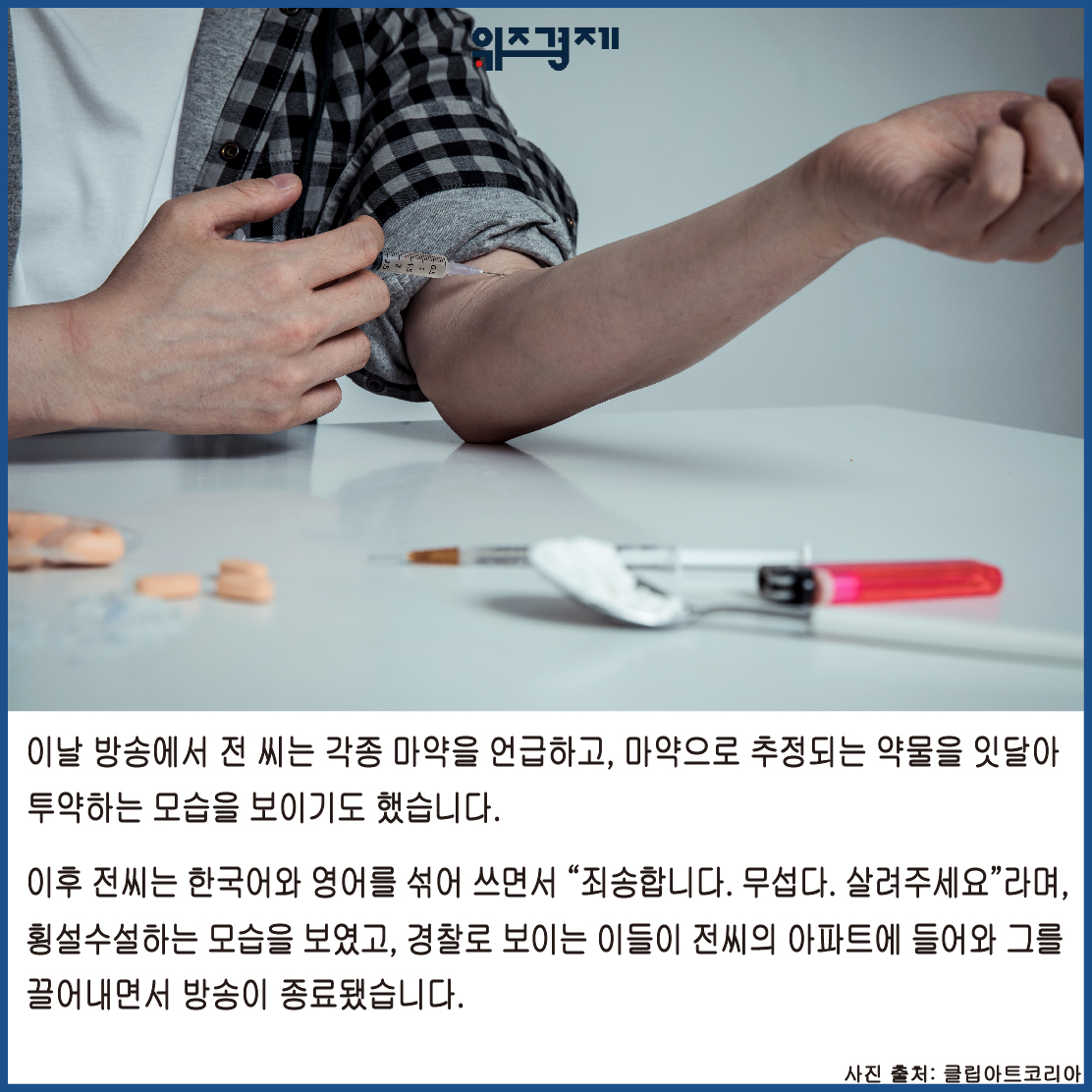 이날 방송에서 전 씨는 각종 마약을 언급하고, 마약으로 추정되는 약물을