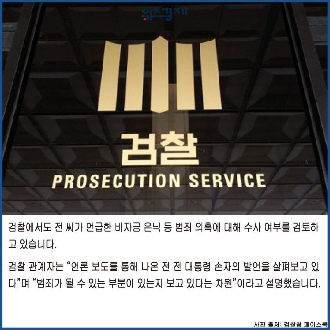 검찰 관계자는 “언론 보도를 통해 나온 전 전 대통령 손자의 발언을