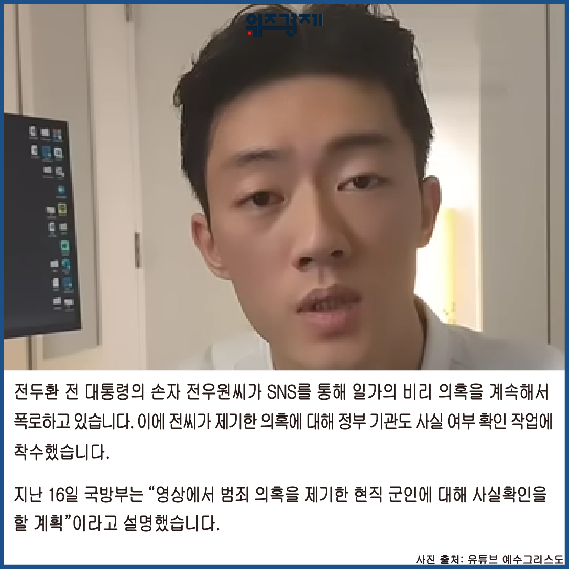 [위즈경제] 이정원 기자 =전두환 전 대통령의 손자 전우원씨가 SNS를 통해 일가의 비리 의혹을 계속해서 폭로하고 있습니다. 이에 전씨가 제기한 의혹에 대해 정부 기관도 사실 여부 확인 작업에 착수했습니다.