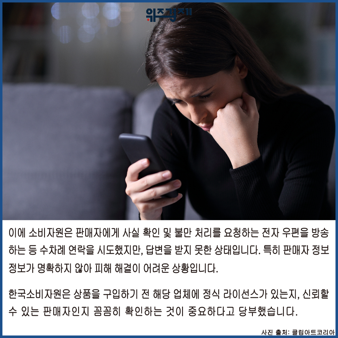 이에 소비자원은 판매자에게 사실 확인 및 불만 처리를 요청하는 전자 우편을 방송하는 등 수차례 연락을 시도했지만, 답변을 받지 못한 상태입니다. 특히 판매자 정보가 명확하지 않아