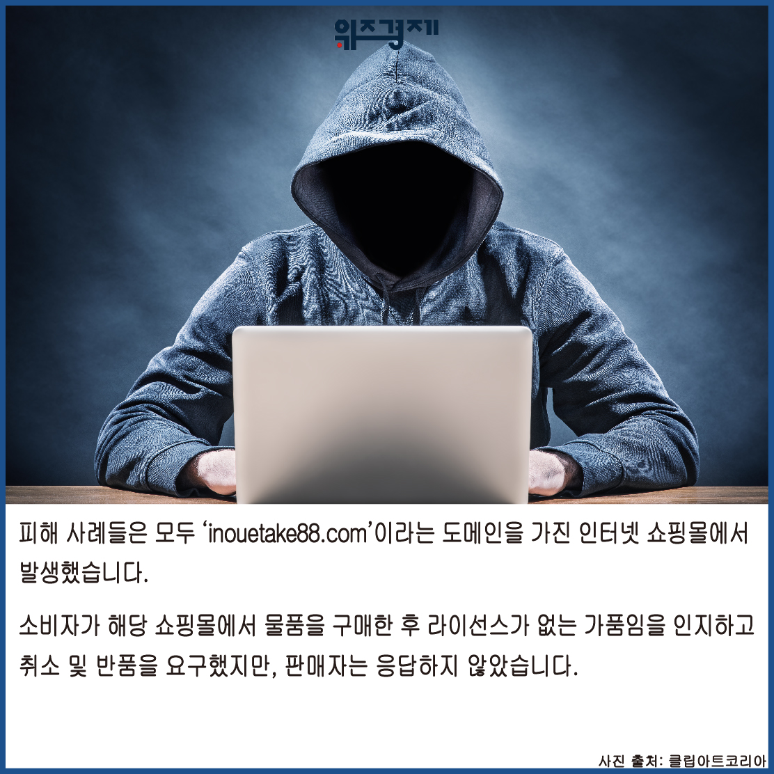 소비자가 해당 쇼핑몰에서 물품을 구매한 후 라이선스가 없는 가품임을 인지하고 취소 및 반품을 요구했지만, 판매자는 응답하지 않았습니다.