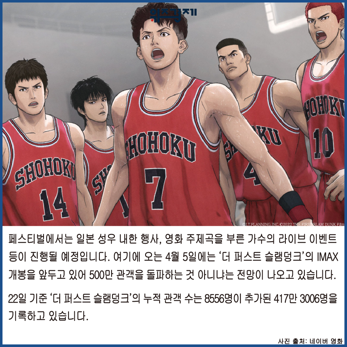 이벤트 등이 진행될 예정입니다. 여기에 오는 4월 5일에는 ‘더 퍼스트 슬램덩크’의 IMAX 개봉을 앞두고 있어 500만 관객을 돌파하는 것 아니냐는