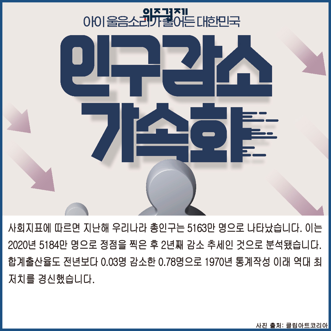 사회지표에 따르면 지난해 우리나라 총인구는 5163만 명으로 나타났습니다. 이는 2020년 5184만