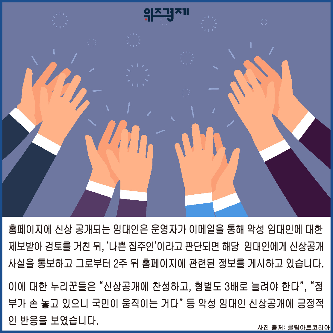 손 놓고 있으니 국민이 움직이는 거다” 등 악성 임대인 신상공개에 긍정적인 반응을 보였습니다.