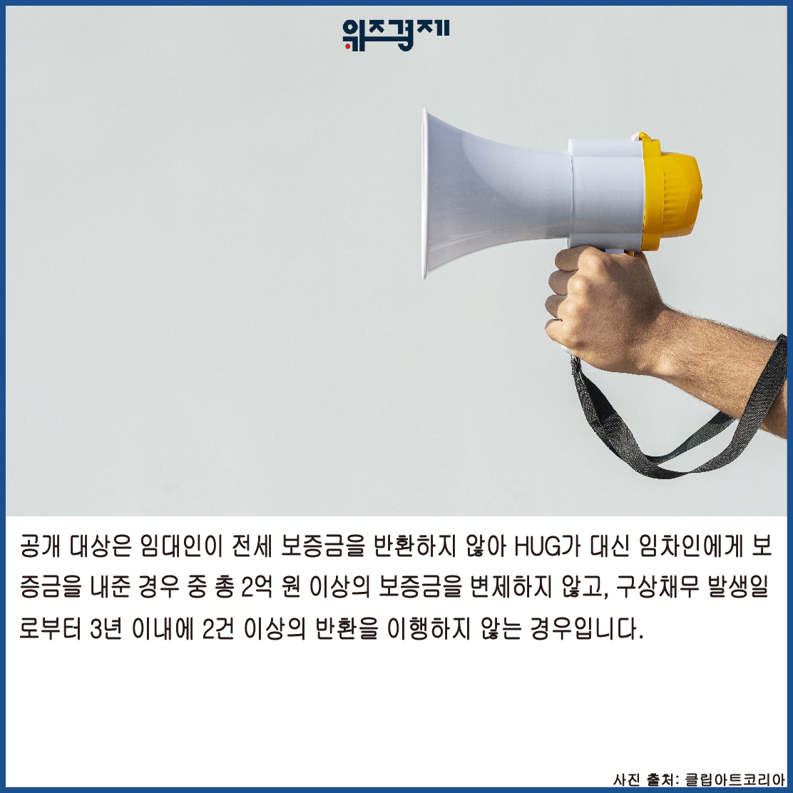 공개 대상은 임대인이 전세 보증금을 반환하지 않아 HUG가 대신 임차인에게