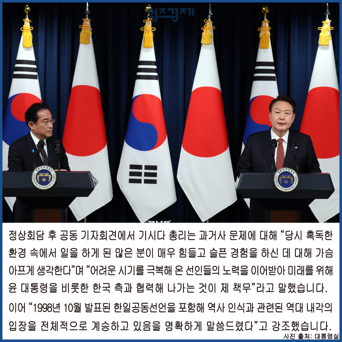 정상회담 후 공동 기자회견에서 기시다 총리는 과거사 문제에 대해 “당시