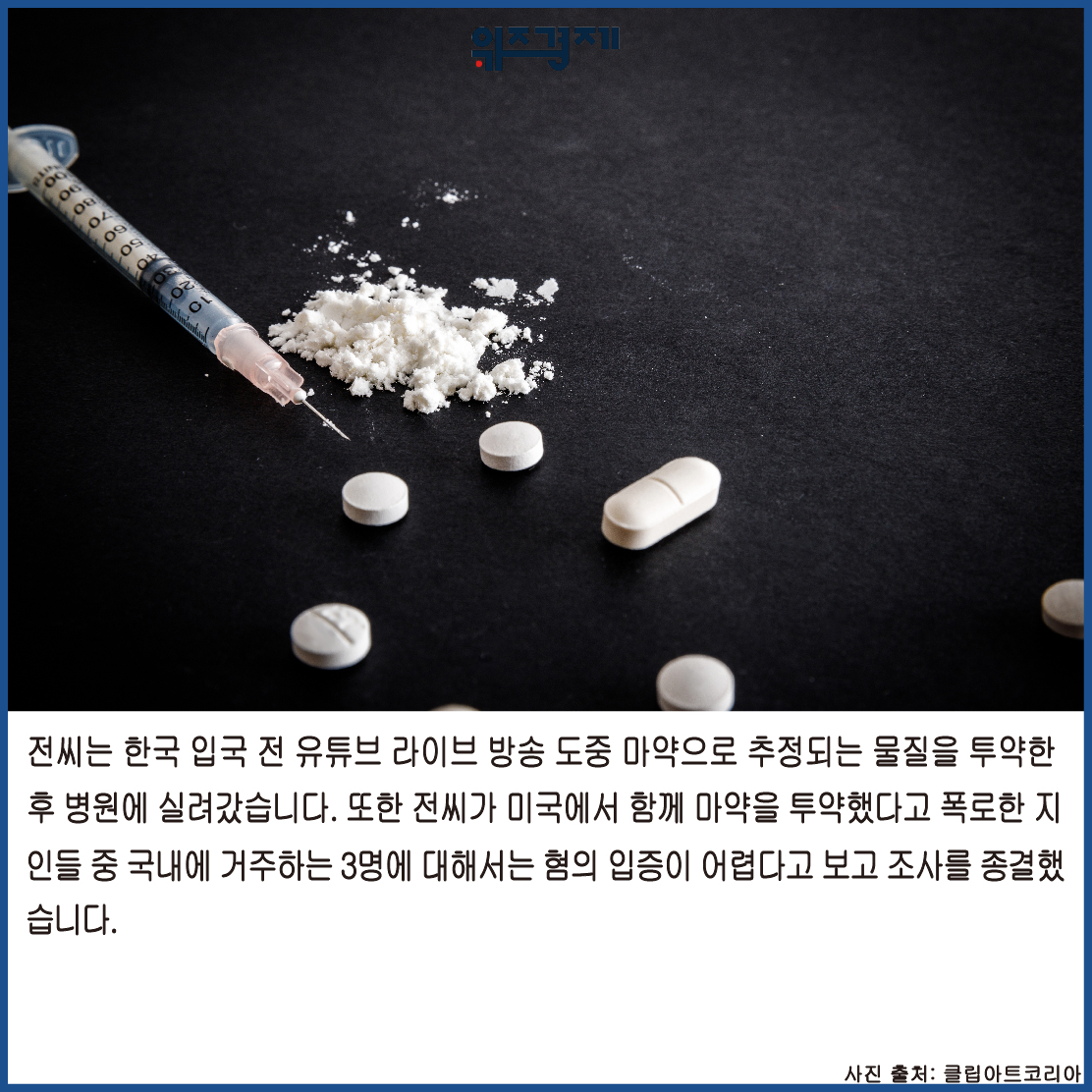 전씨는 한국 입국 전 유튜브 라이브 방송 도중 마약으로 추정되는 물질을 투약한 후 병원에 실려갔습니다. 또한 전씨가 미국에서 함께 마약을 투약했다고 폭로한 지인들 중 국내에 거주하는 3명에 대해서는 혐의 입증이 어렵다고 보고 조사를 종결했습니다.