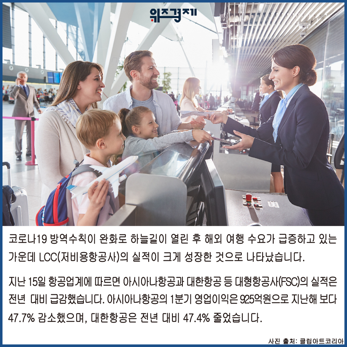 [위즈경제] 이정원 기자 =코로나19 방역수칙이 완화로 하늘길이 열린 후 해외 여행 수요가 급증하고 있는 가운데 LCC(저비용항공사)의 실적이 크게 성장한 것으로 나타났습니다.